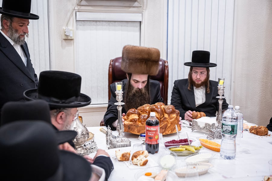 במרכז ברוקלין: הרבי מקאסוב כינס את הקהל לסעודת ראש חודש בבית אביו