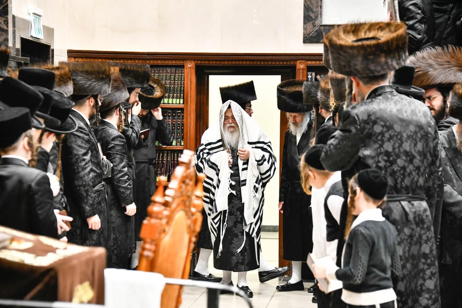הקולפיקים נעמדו בשורה הראשונה | על במה מוגבהת - סליחות ראשונות בחצה"ק ספינקא