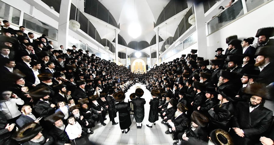 הקפות של דבקות: הרבי מנדבורנה במעמד הקפות שניות בהיכל בית מדרשו בבני ברק