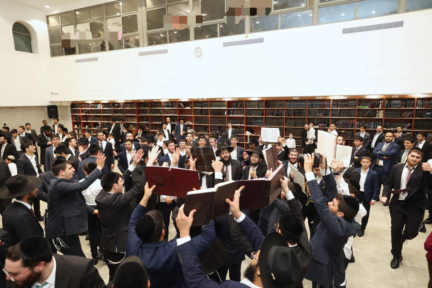 בשירה וריקודים עם מאות בני הישיבה ספר התורה יצא מחדרו של ראש הישיבה הגר"ש מועלם אל היכל בית המדרש.