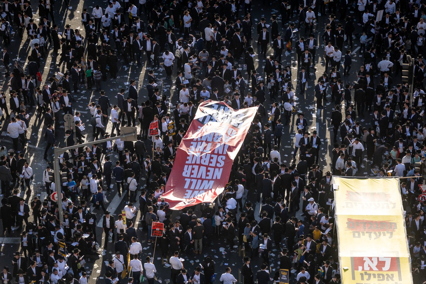 ראשי הישיבות והאדמו"רים, השלטים שהחזיקו ההמונים, התפילה שהרעידה את הכניסה לירושלים | צפו בגלרייה מיוחדת, 49 תמונות, מהרגעים הגדולים בעצרת ההיסטורית בעד לימוד התורה (בארץ)