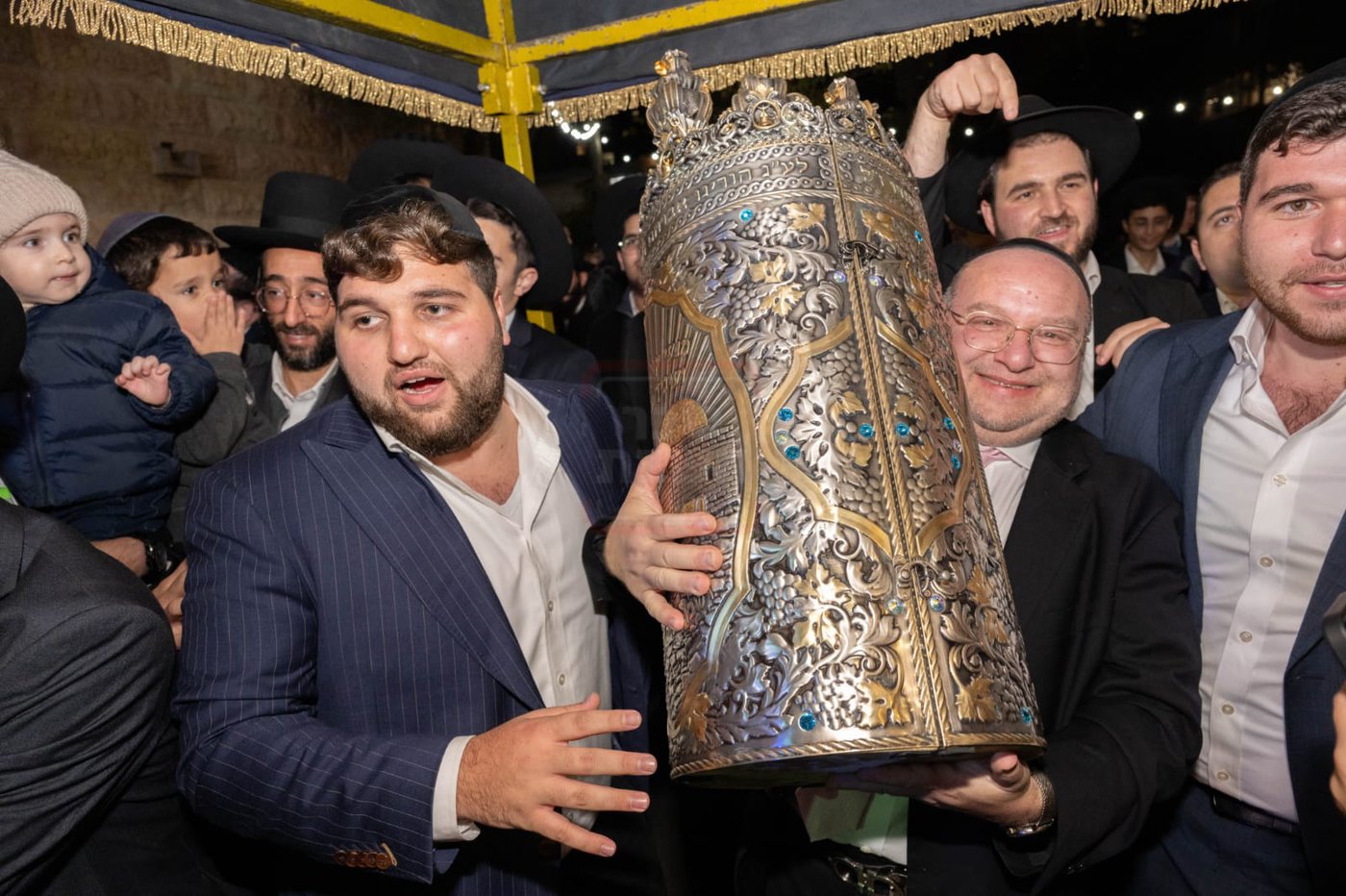 ספר תורה מהודר הוכנס לבית הכנסת שבבית הראשון לציון הגאון רבי אליהו בקשי דורון זצ"ל בשכונת בית וגן בירושלים | הספר נתרם על ידי משפחת לניאדו מארה"ב לע"נ הוריהם | בתהלוכה רבת משתתפים רקדו לכבוד ספר התורה בהשתתפות רבנים, דיינים, אישי ציבור ותלמידי הרב זצ"ל | הרבנים הראשיים הראשל"צ הגר"ד יוסף והגר"ק בר הגיעו להשתתף במעמד המרגש (חרדים)