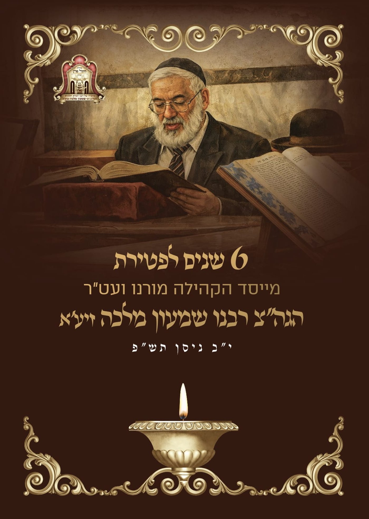 בקהילת "היכל מרן" בבני ברק ציינו השבוע שש שנים להסתלקותו של מייסד הקהילה, המרא דאתרא ואב"ד תל אביב, הגאון הצדיק רבי שמעון מלכה זצ"ל, שנלב"ע ביום י"ב ניסן תש"פ. בקהילה ציינו כי זכה להסתלק ביום פטירת מרן ה'בית יוסף' זיע"א